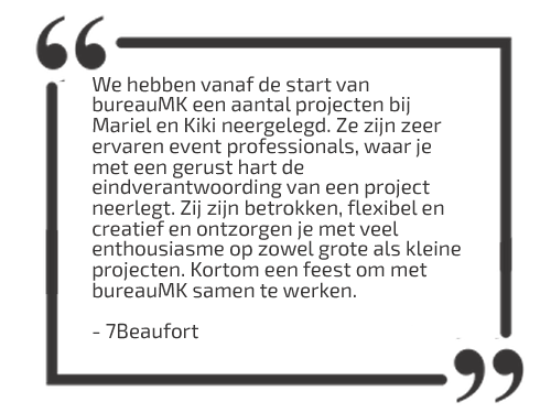 Geen event is hetzelfde en dus geldt dat ook de voorbereidingen ervan steeds verschillend zijn. bureauMK Events & Projecten belooft: